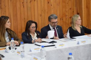 La ministra de Gobierno, Nataly Morillo, y el gobernador del Azuay, Xavier Bermúdez, se reunieron