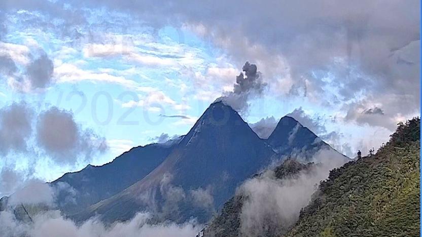 Volcán Reventador expulsa material piroclástico este lunes 6 de abril.